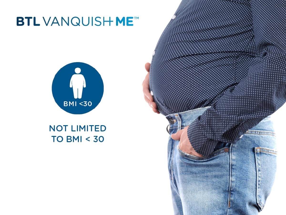 Some body contouring procedures are limited to people who fall within a certain BMI bracket, but that is not the case with Vanquish ME. It's suitable for anyone regardless of their BMI, size or shape.
